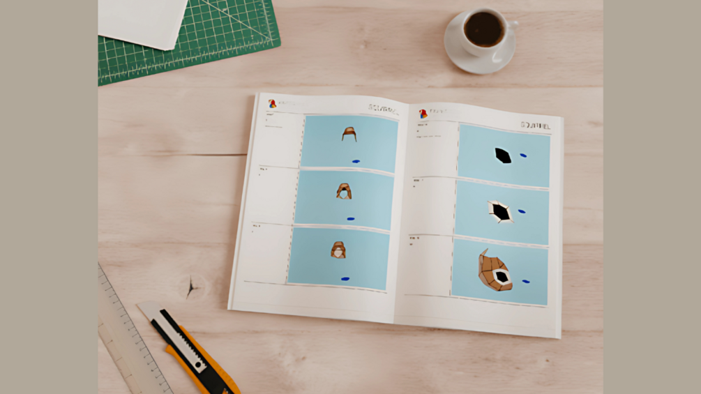 > Download & unzip the files > Print the template > Cut out the parts > Fold along folding lines > Glue parts together by following the Visual Guide.